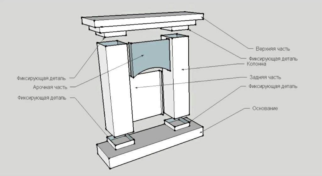 - Сначала на бумаге делают эскиз будущего сооружения. Мастерам без фантазии можно найти схему камина в сети Интернет. На рисунке отмечают размеры деталей.