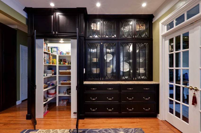 А что, если у вас нет кладовой комнаты вообще? Тогда вы можете организовать под кладовку встроенный шкаф в коридоре или угловую кладовку на кухне! Фото таких интересных решений завершают нашу статью.