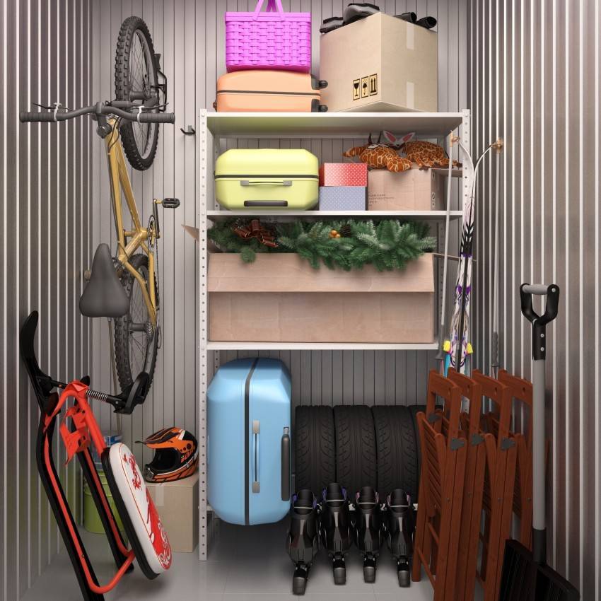 При оборудовании системы хранения любых вещей, материалов, инструментов, продуктов продумывают, где и какие вещи будут размещаться. Для больших вещей желательно установить стеллажи, как с открытыми полками, так и с ящичками, где удобно хранить мелкие предметы. Подойдут и напольные конструкции, такие как комоды, ящики, сундуки.