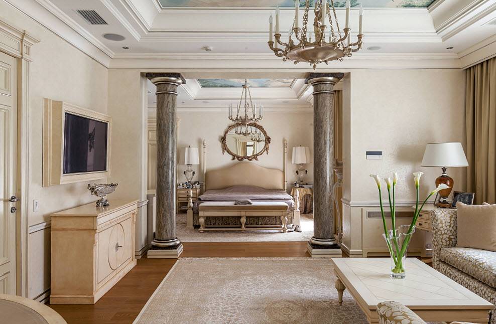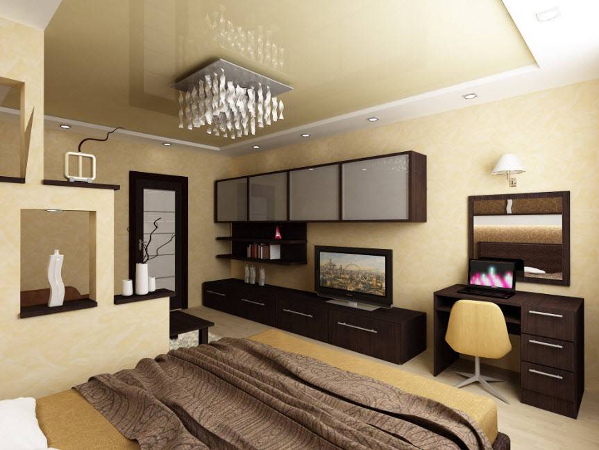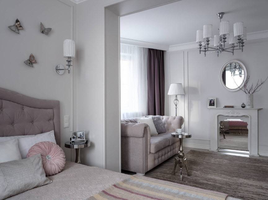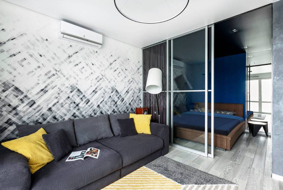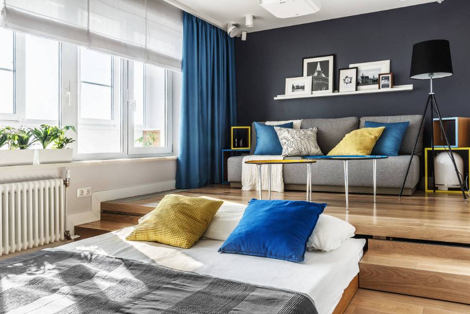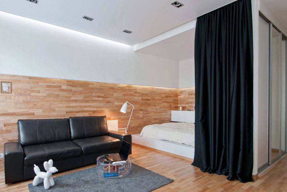 Применяются много способов для разделения в комнате пространства спальни и гостиной: