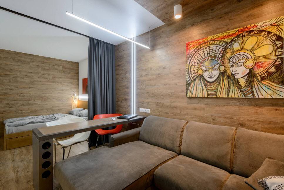 Гостиная и спальня в одной комнате дают возможность сэкономить полезное пространство к квартире.