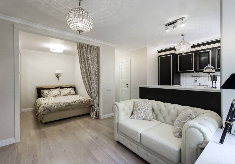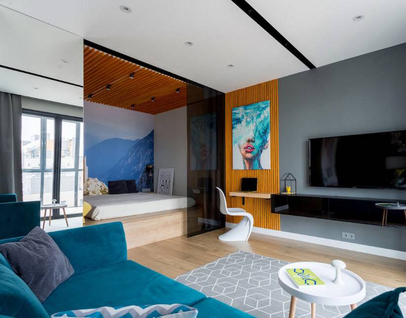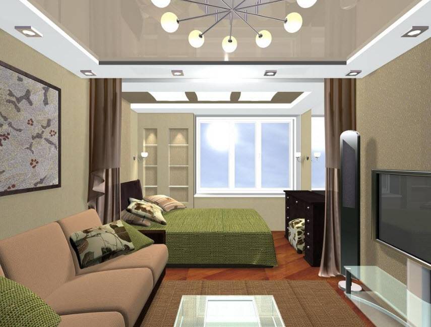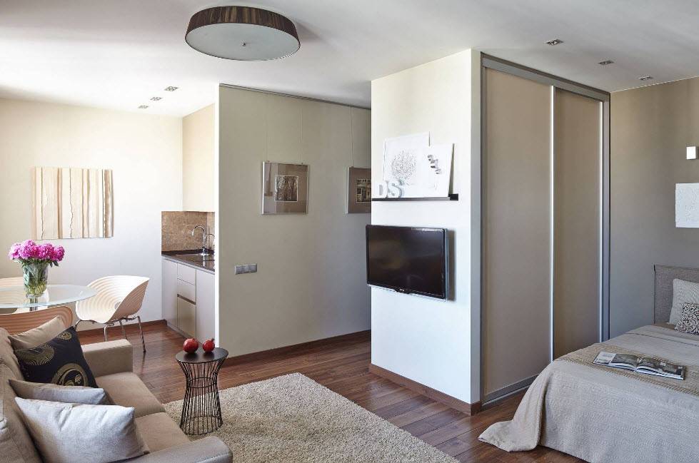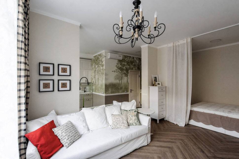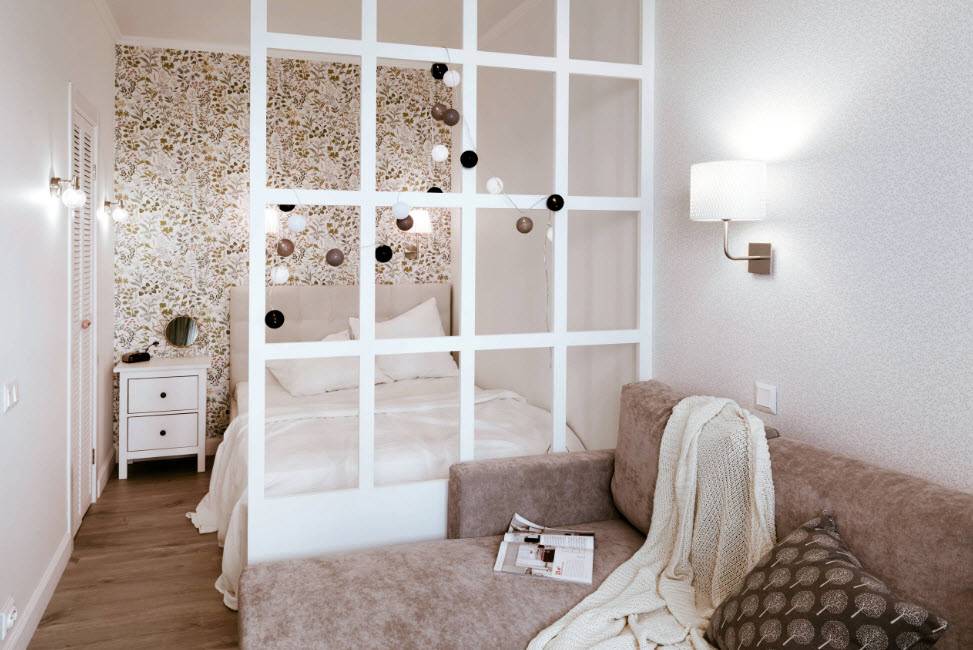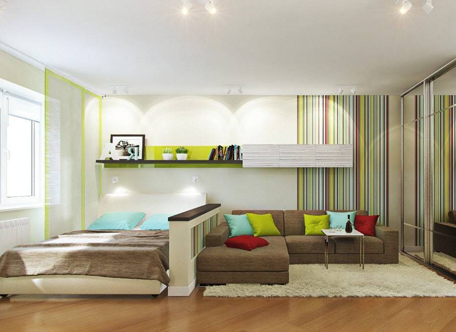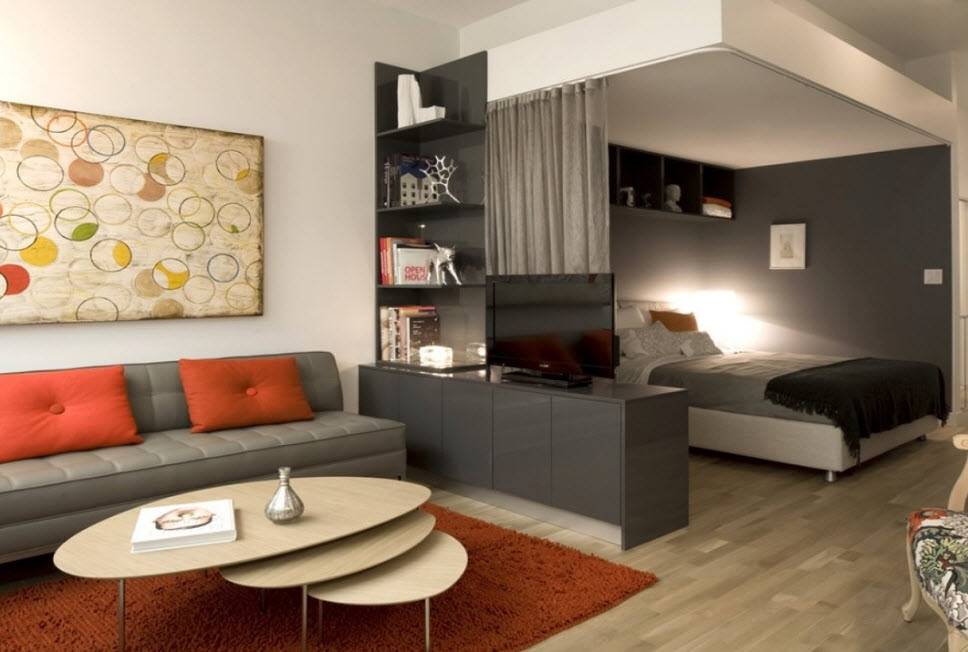 За основу несложно взять фото зонирования гостиной и спальни, изменив их по своему вкусу.