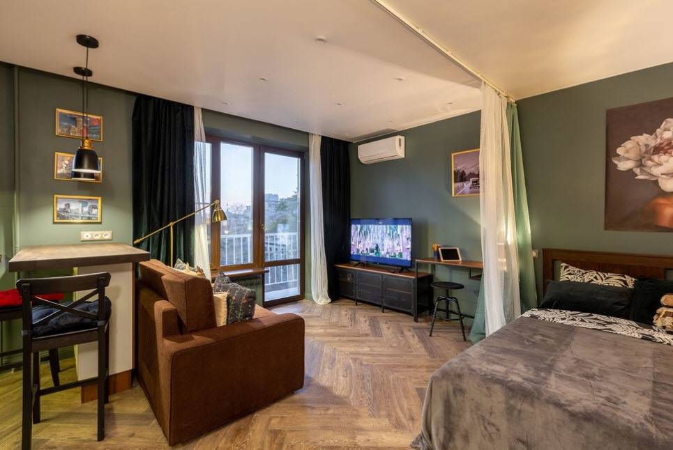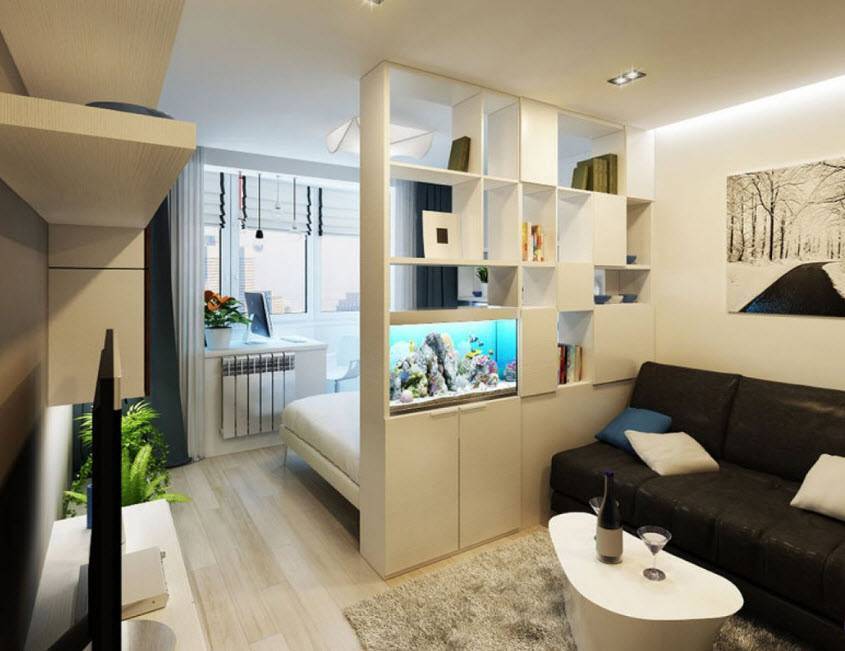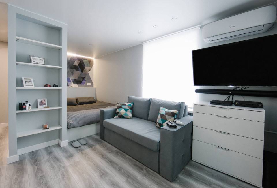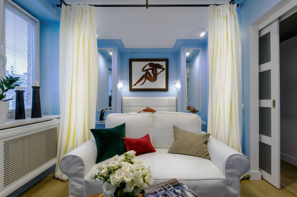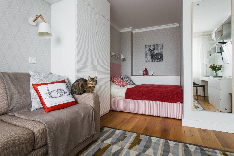 У зонирования однокомнатной квартиры на спальню и гостиную есть как явные достоинства, так и некоторые недостатки.