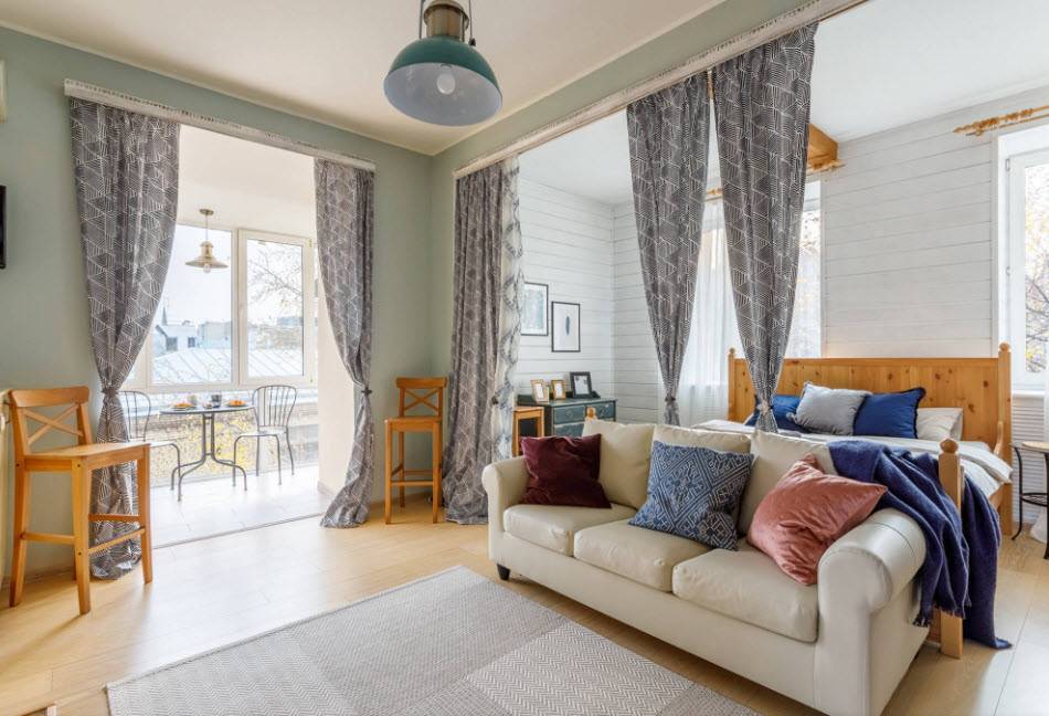 Зонирование не позволяет организовать интимное пространство. Если в отдельной спальне можно полностью уединиться, плотно закрыв дверь, то гостиная со спальным местом, хотя бы и за тяжёлой гардиной, этого сделать не позволит.