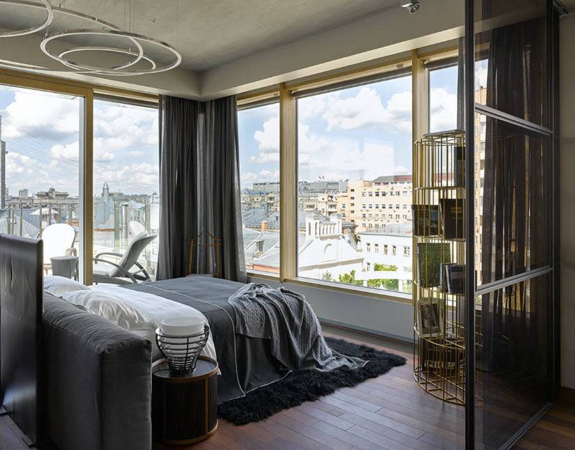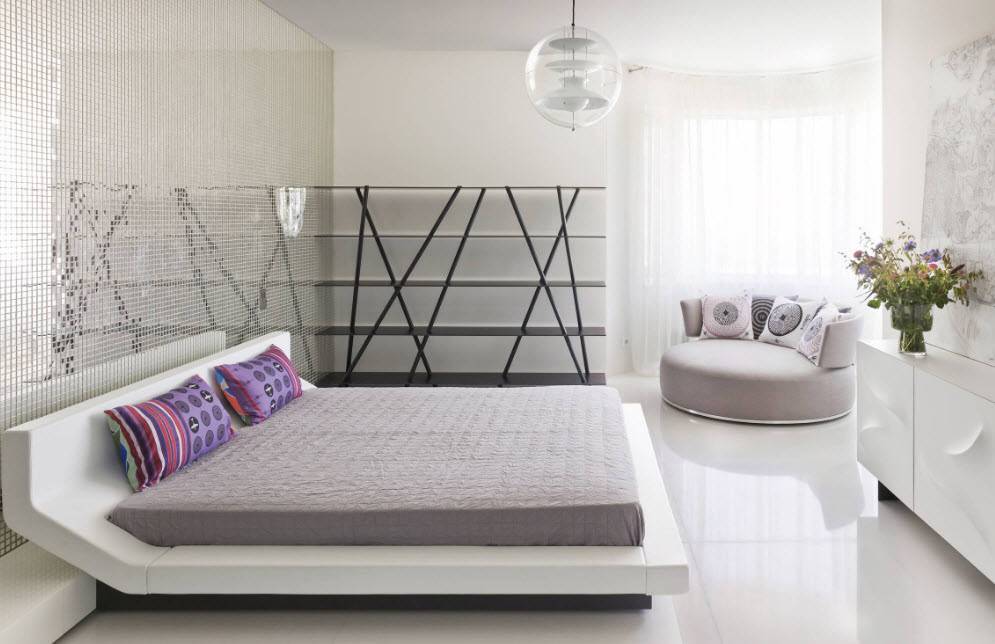 Нишу для спальни можно обустроить и специально. Конечно, для этого потребуется отнять немного площади для обустройства капитальных перегородок. Но их толщина не должна быть слишком существенной. Кроме того, таковые могут быть представлены стеллажами – с прозрачными полками, полуарками или ажурными конструкциями, когда стены местами заменены мебелью для хранения самых разных вещей.