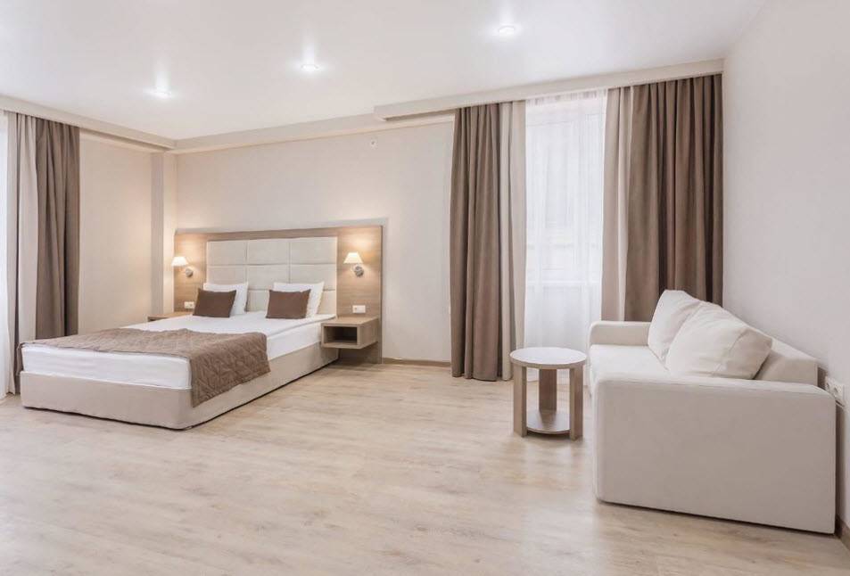 Спальня-гостиная способна расположиться практически в любом помещении – однокомнатной квартирке, где за стеной прячутся лишь кухня и санузел, большой проходной комнате, если там необходимо выделить укромное место для сна. Иногда зал, где обитают взрослые, приходится отделять от детской спаленки, чтобы у малыша было небольшое личное пространство.