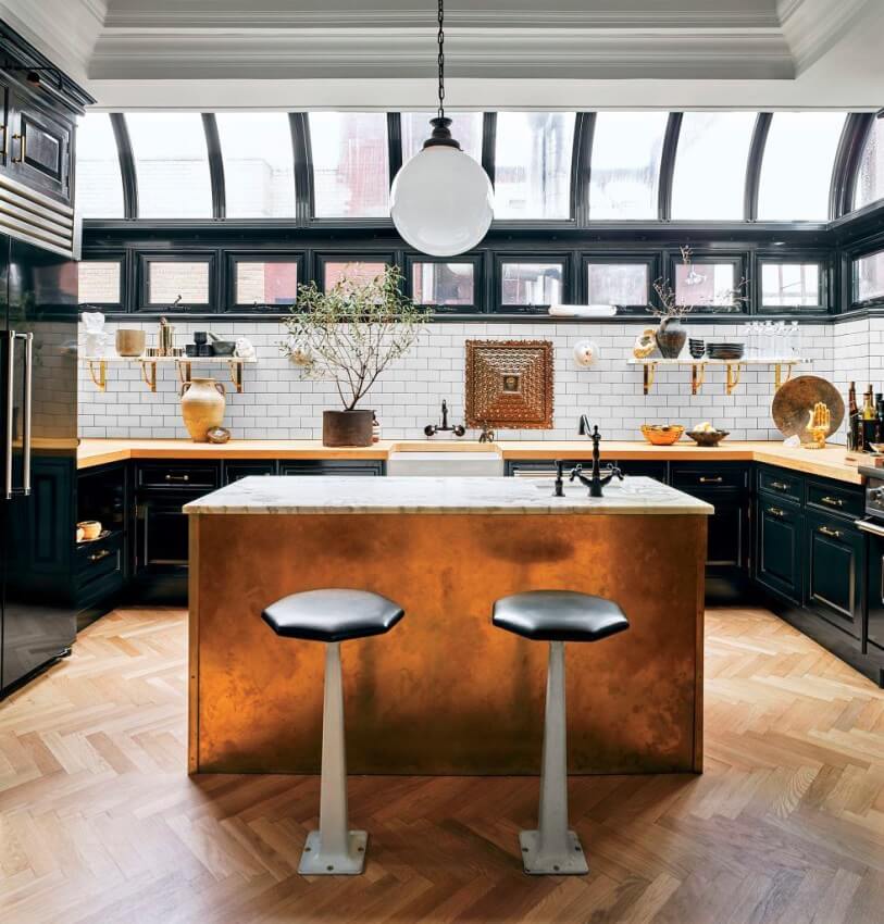 Свободный стиль лофт с кухней остров смотрится необычно стильно