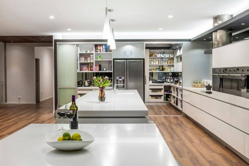 Если между кухней и кладовкой расположены стеклянные дверцы, — света потребуется меньше (вы частично используете свет на кухне и естественный свет днем). Если потолки высокие, — на верхние полки, возможно, необходимо установить более мощные лампы.