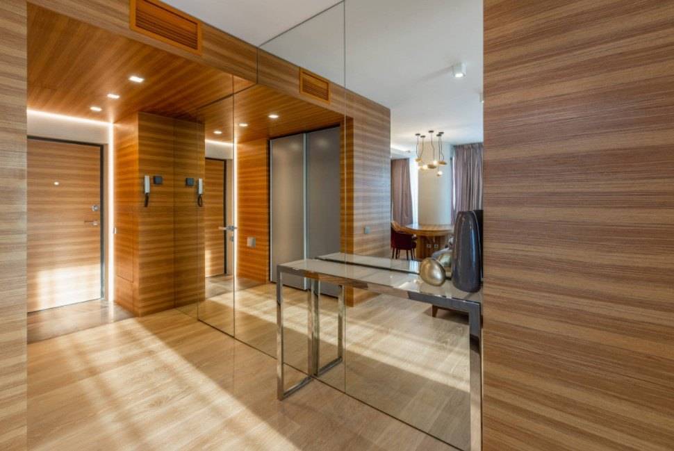 Чем зеркал больше и чем они больше, тем лучше. Шкаф-купе с зеркальными дверцами и зеркальное панно на стене — хорошие варианты для расширения тесной входной зоны, и уместные — с точки зрения функциональности помещения.