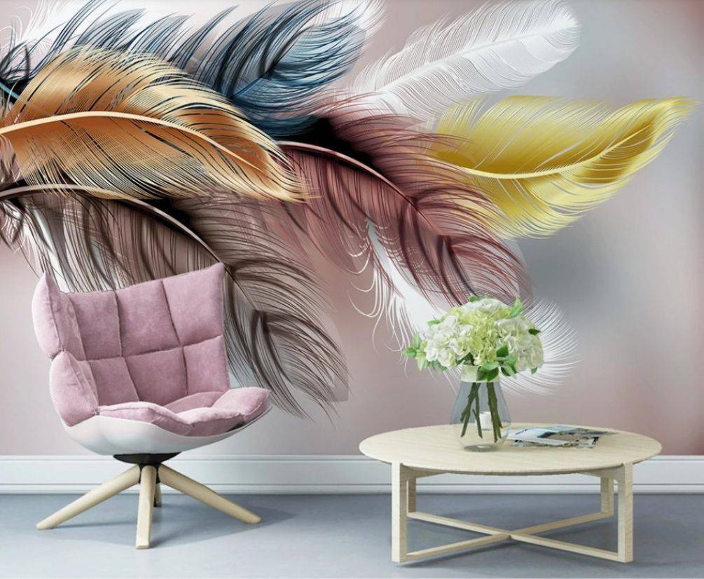 Красочные 3D-обои с перьями для гостиной