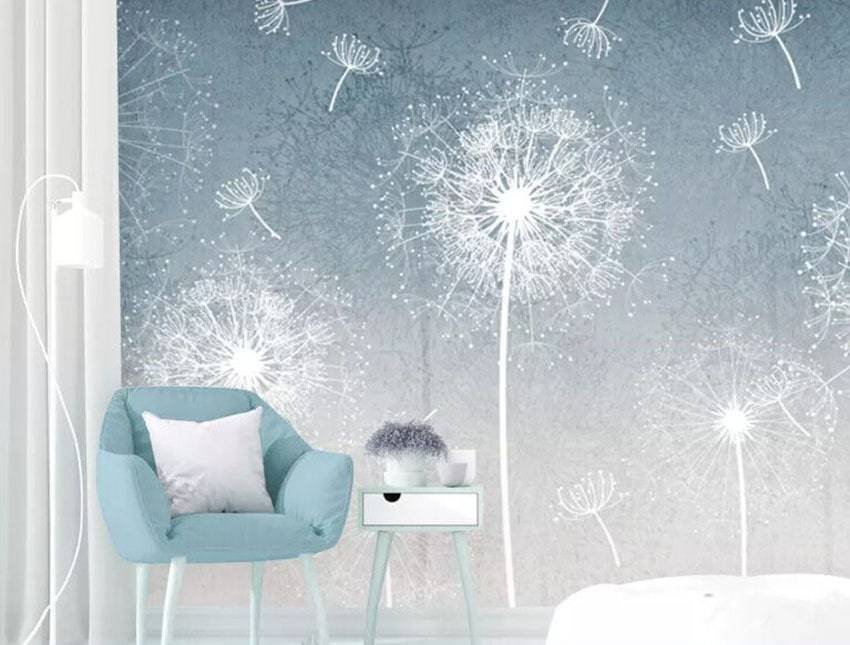 Стандартные образцы продаются в рулонах с повторяющимся рисунком, геометрическим узором, растительным принтом. Монтаж полотен прост и понятен, это вариант для оклейки любой стены целиком.