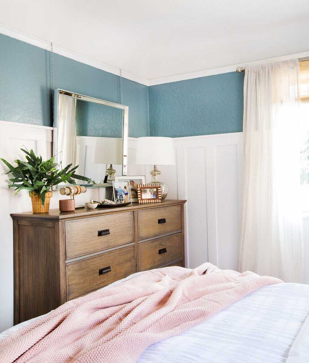 Вид комнаты можно грамотно скорректировать при помощи цвета. Скрывая недостатки, правильно подобранная палитра преподносит комнату в выгодном свете. Основными стоит сделать холодные и светлые оттенки.