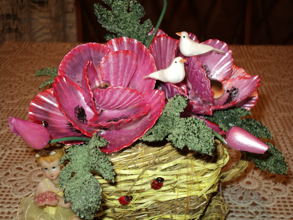 Красивый цветочный горшок готов! Чтобы укрепить слой ракушек, разрешается нанести на них лак или золотистую краску.