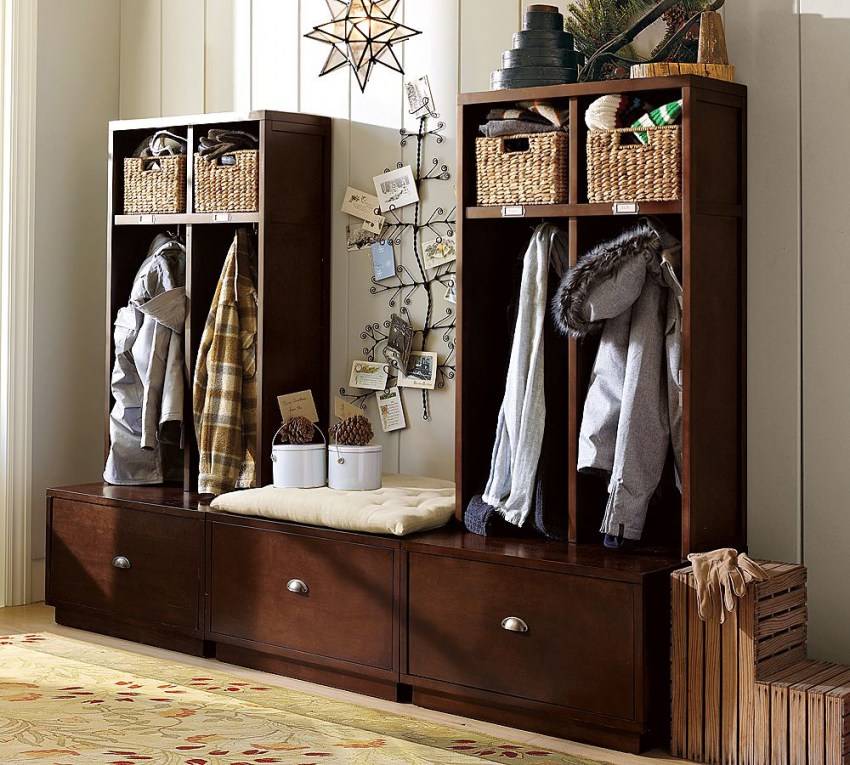 В этом же шкафу можно выделить полку для головных уборов и шарфов, а верхнее отделение использовать для хранения несезонной обуви. Если прихожая все же небольшая, от шкафа можно отказаться, заменив его комодом и вешалкой.