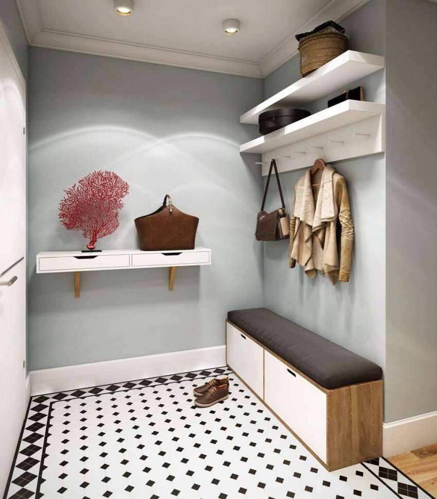 В небольшой прихожей практически не должно быть декора, выступающих элементов и рисунков.
