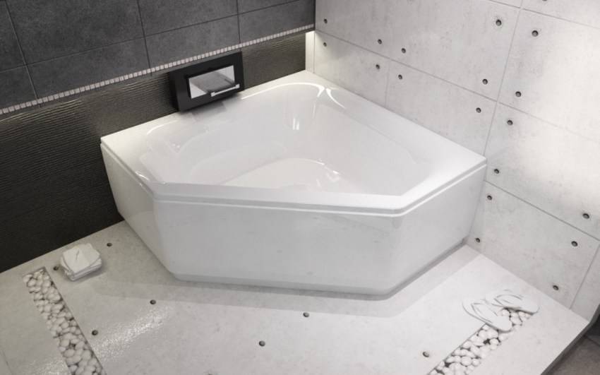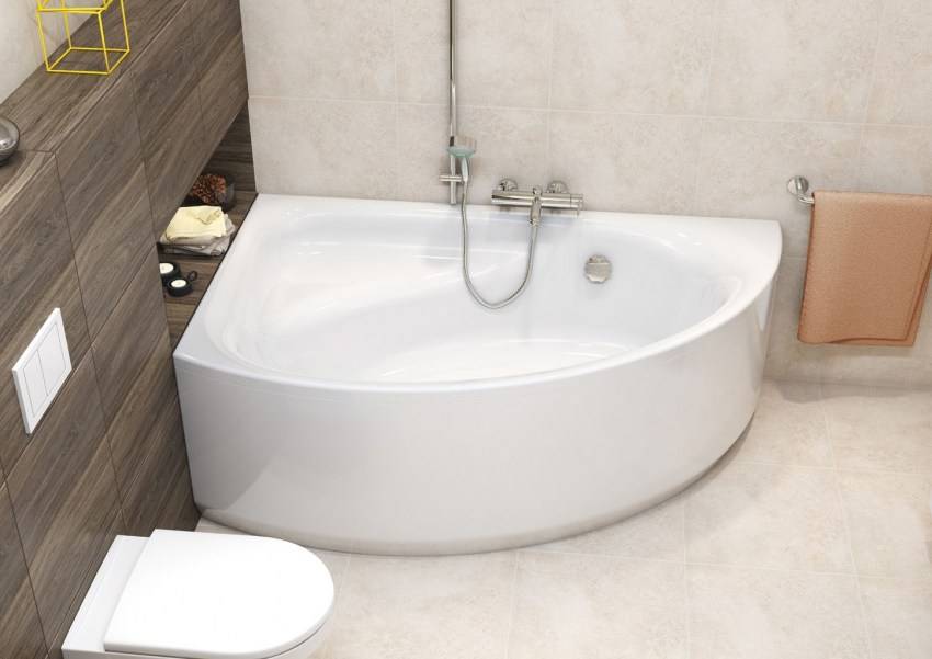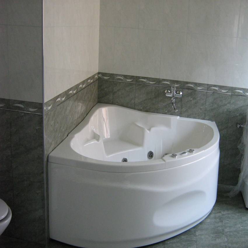 Стандартные размеры ванны, которая будет монтироваться в углу, составляет 150-160 см, хотя в магазинах можно встретить и отклоняющиеся от данных параметров модели.