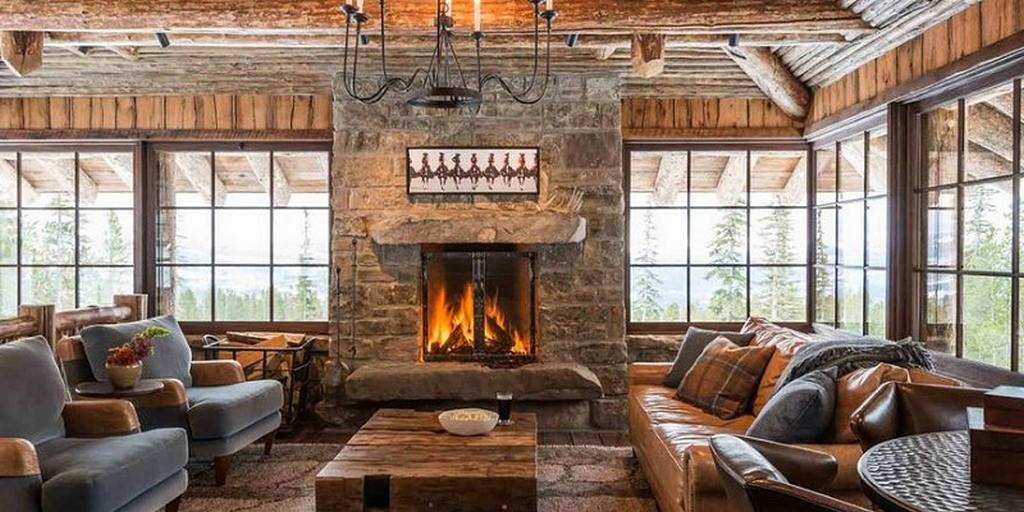Для внутренней отделки в домах в альпийском стиле лучше использовать дерево и камень. Хотя некоторые домовладельцы предпочитают интерьер в стиле лофт. Даже если в комнатах все отделано металлом, в гостиной лучше использовать спокойные цвета и натуральные материалы.