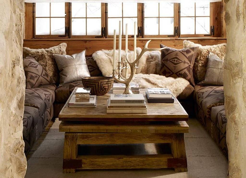 Уютная комбинация стилей шале и кантри в оформлении гостинойИсточник paydaydcr.com