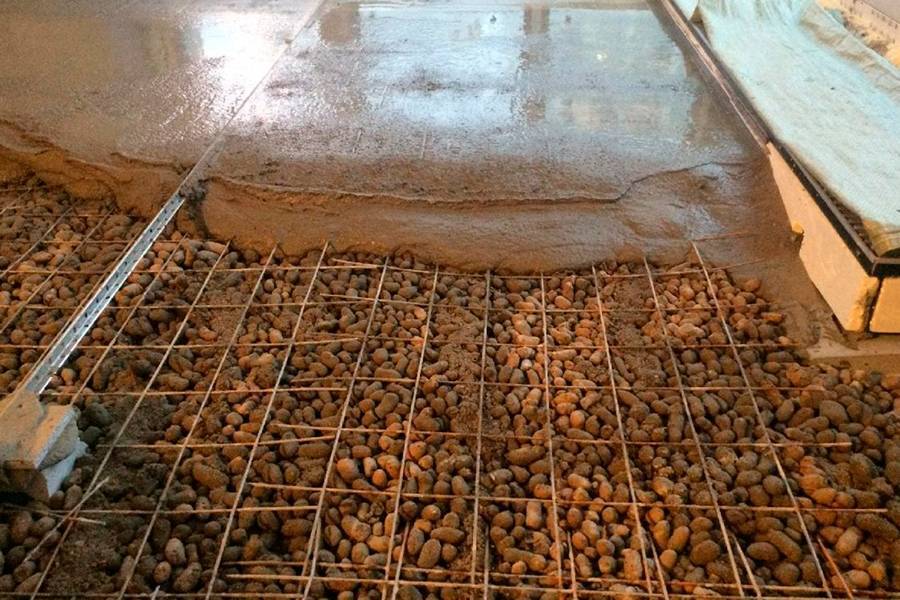 - Укладка на засыпки из щебня или керамзита. В данном случае стяжка укрепляется арматурой в местах повышенной нагрузки, например, под печами, каминами, стенками и механизмами.