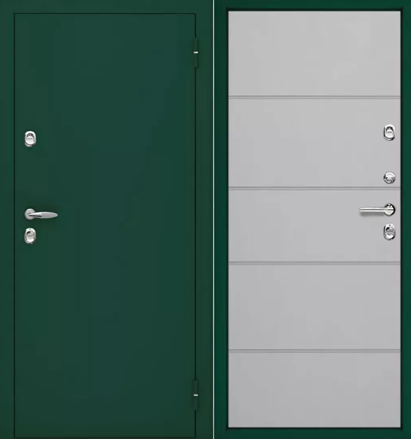 - Внешняя сторона изготовлена из холоднокатаного металла. Покрытие выполнено следующими материалами — антикоррозийным, цинкосодержащим грунтом и полимерной краской RAL 6005.