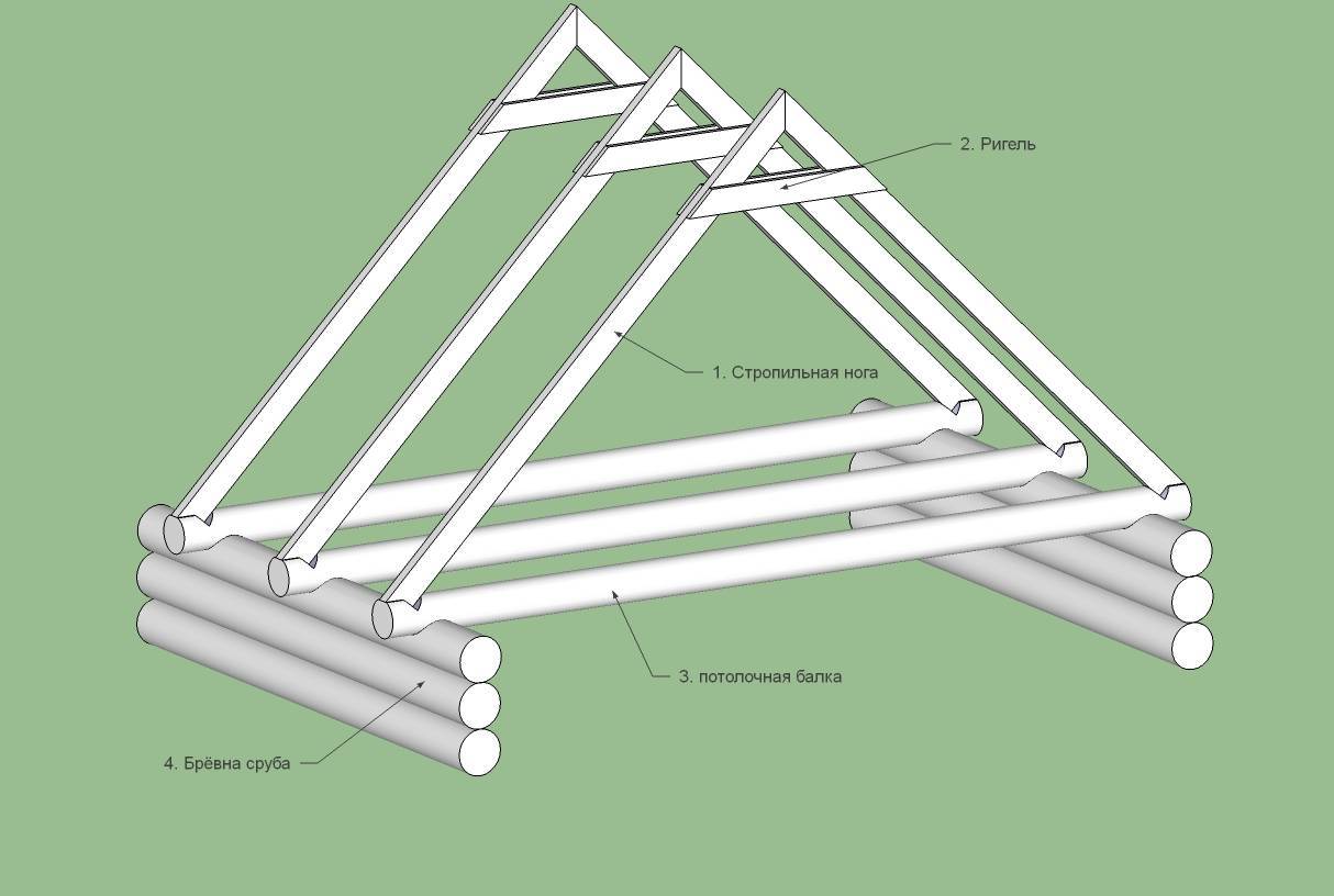 Во избежание падения подготовить строительные леса, а между противоположными стенами бани, наверху уложить площадку из досок. Деревянные детали вначале высушить до влажности 12%, затем обработать антисептическими и предотвращающими возгорание средствами. Стропильные бруски обрезаются по размеру тоже внизу: стоя на лесах это сделать сложно.