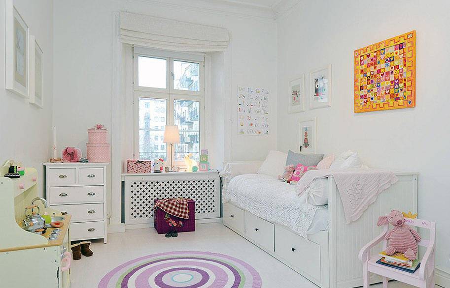 Оформление детской комнаты в белых тонах предполагает, что этот цвет будет доминировать.