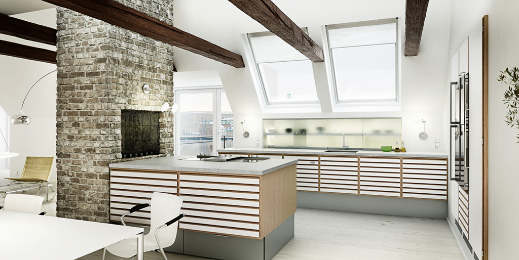 Идея 1. Белая кухня с деревом натурального оттенка