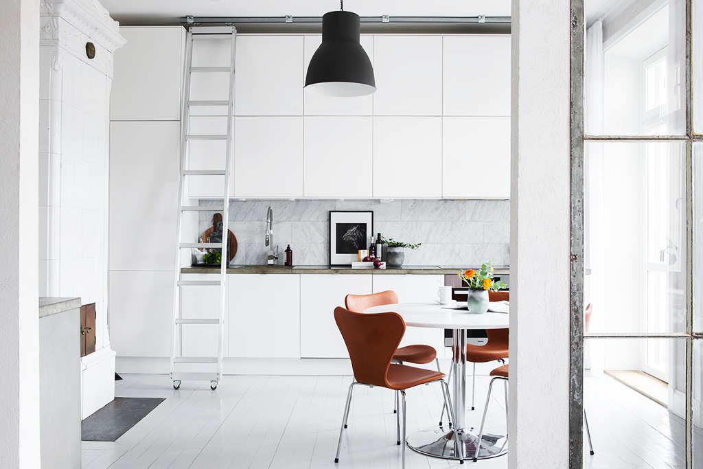 Светлые оттенки и лаконичные формы визуально расширяют небольшое пространство, а натуральные материалы и выразительные фактуры делают дизайн кухни в скандинавском стиле по-настоящему уютным