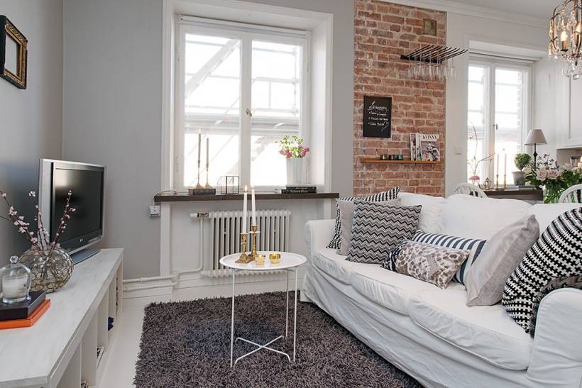 В небольших гостиных лучше поставить его к стене, также для экономии пространства отдайте предпочтение угловой конфигурации.