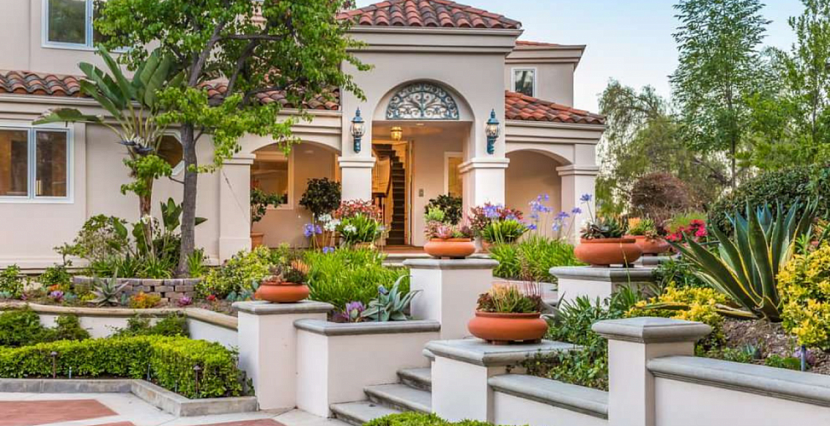 Средиземноморский стиль характеризуется тропическими растениями и открытыми площадками для отдыха. Можно добавить бассейн.