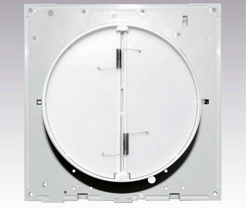 Здесь же следует сказать о модели с обратным клапаном. Вытяжка с таким элементом желательна в многоквартирных домах. Обратный клапан предотвращает проникновение посторонних запахов, сырости в ванную извне при выключенном вытяжном пропеллере.