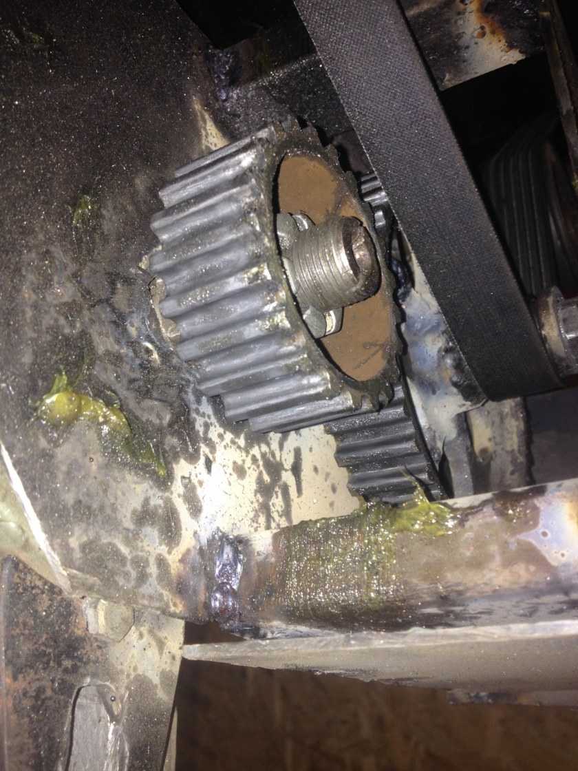 Начинаем собирать привод. Первой ставим большую шестеренку на приваренный ранее штифт.