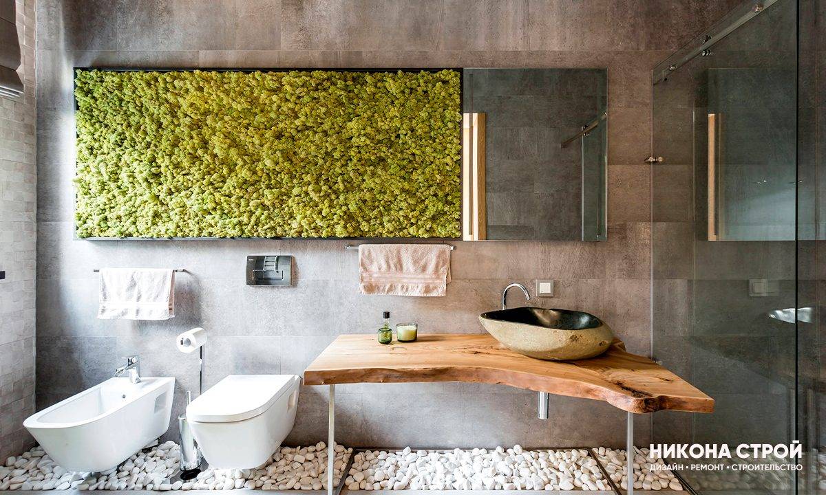 В строительном магазине имеется целый набор вариантов отделки этого цвета — его универсальность привлекает многих. В ванной комнате можно использовать плитку, мозаику, краску, обои, ПВХ или дерево. Иногда встречаются более экзотические идеи, вроде натурального камня. Но это довольно дорого и не очень удобно в эксплуатации.