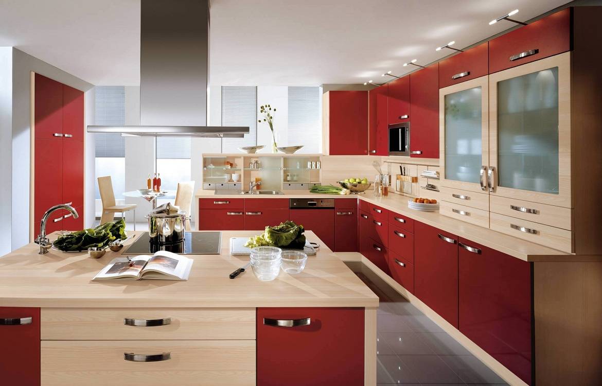 Красный и бежевый – кухня в такой гамме в зависимости от оттенка красного смотрится эффектно и сочно, но при этом не теряет элегантности.
