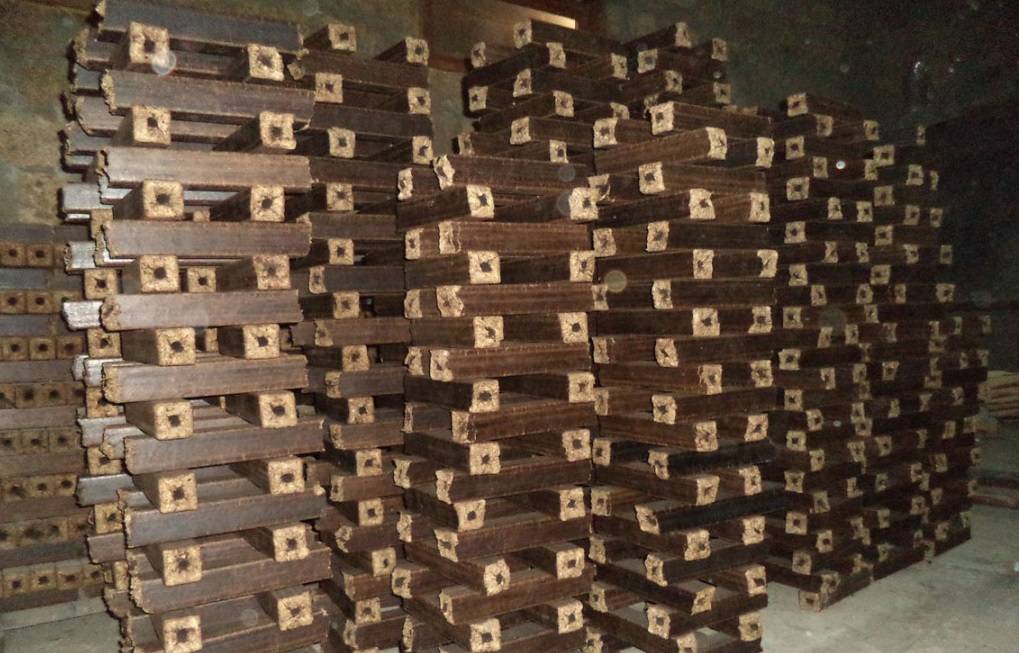 Топливные брикеты из опилок, вынутые из формы, раскладывают на просушку на солнце или в хорошо отапливаемом помещении. Следует добиться влажности, сопоставимой хотя бы с показателями сырых дров (до 25%). Чем суше топливо, тем выше его теплоотдача. Твердотопливные и пиролизные котлы рассчитаны на использование топлива, влажность которого не превышает 30%.