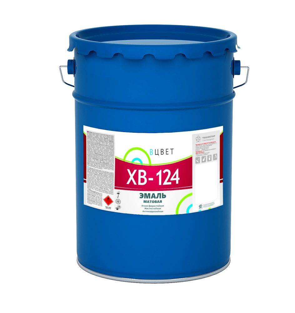 Краска ХВ-124. Очень распространена в машиностроении. Используется для окрашивания поверхностей из металла, предварительно загрунтованных.