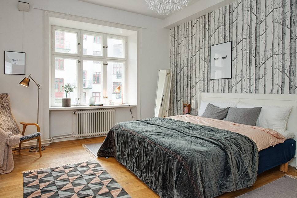 Скандинавский стиль позволяет подчеркнуть сдержанность хозяина комнаты, его тягу к чистоте и порядку. Обои могут иметь светло-серый или прозрачно-голубой оттенок в случае, если белые стены кажутся излишне строгими.