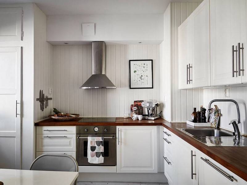 - пристенные – устанавливаются между кухонными шкафами непосредственно на стене;