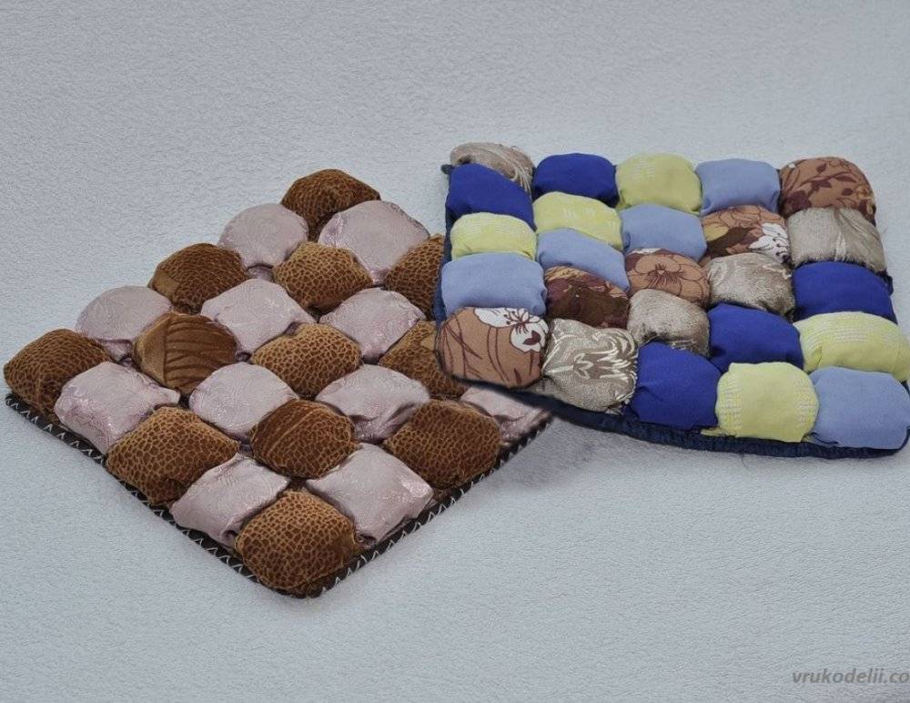 Сидушку можно снять с табуретки и использовать в играх как коврик в кукольной комнате. Или как подставку под горячую кастрюлю.