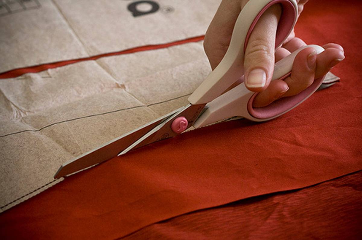 - Готовые лекала прикалывают к изнанке ткани и обводят мылом или мелом, после чего выполняются допуски (чем больше, тем более надежным получится шов).
