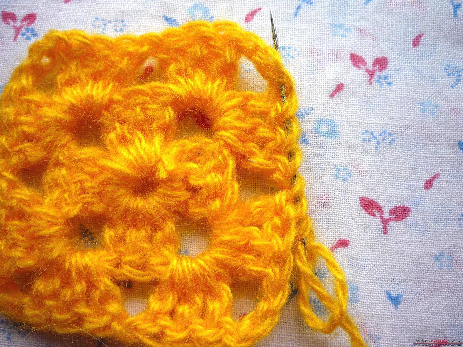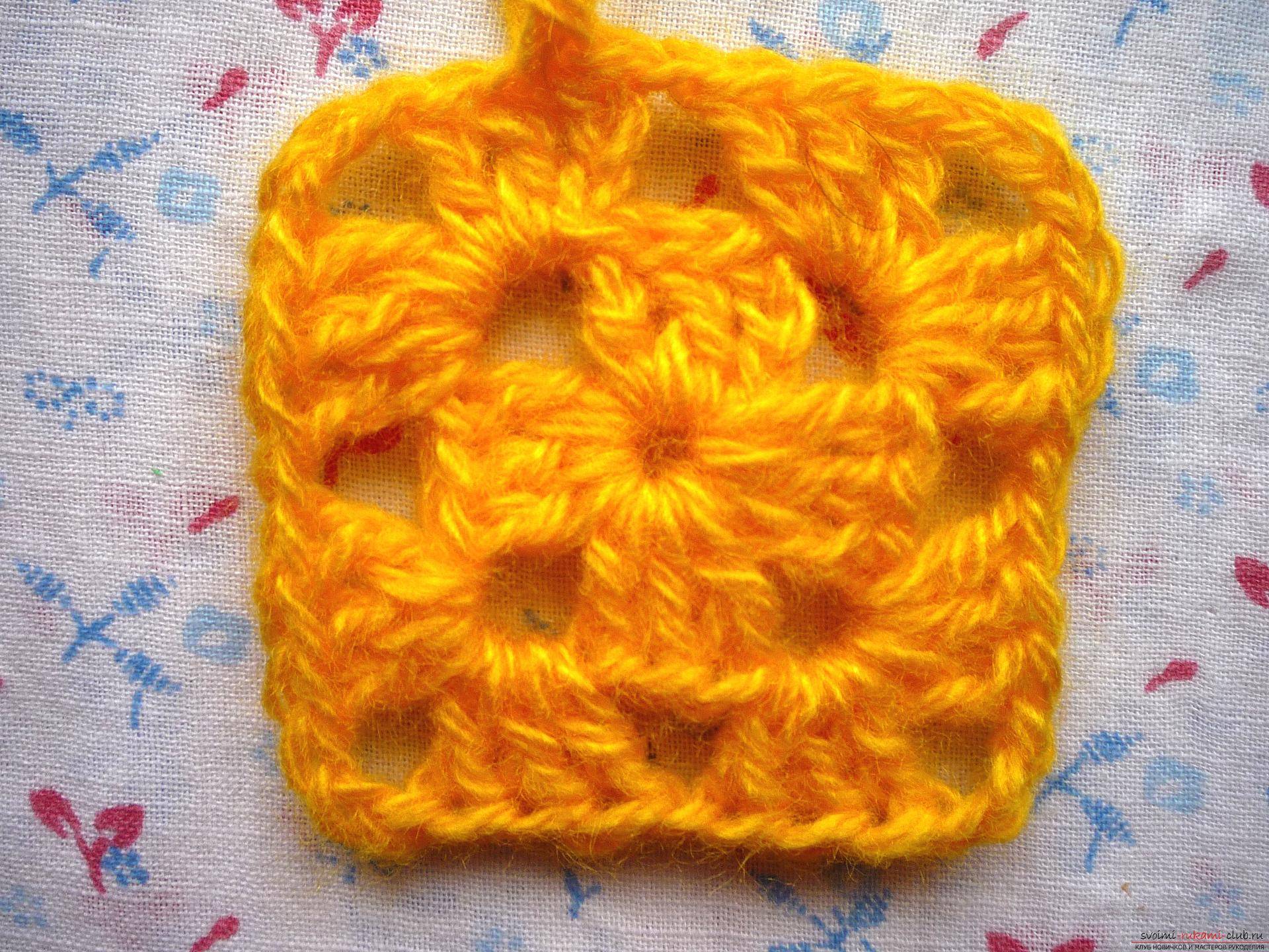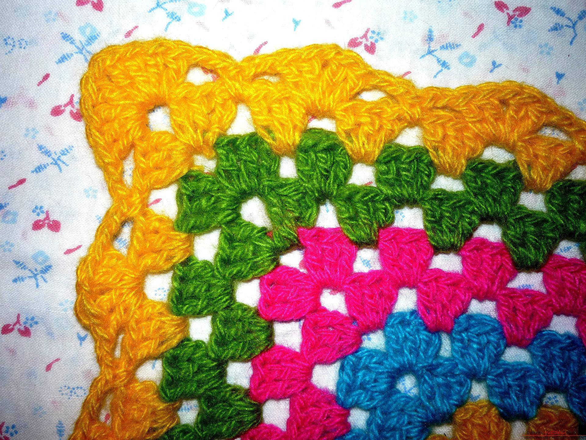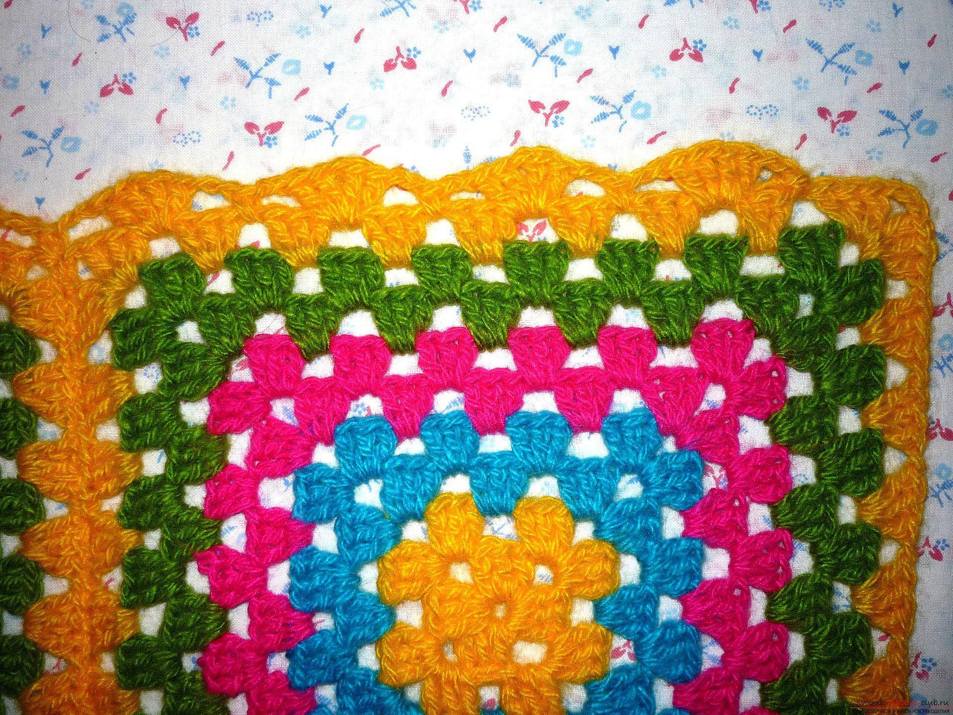 Основной схемой вязания является всем хорошо известный мотив под названием «бабушкин квадрат».