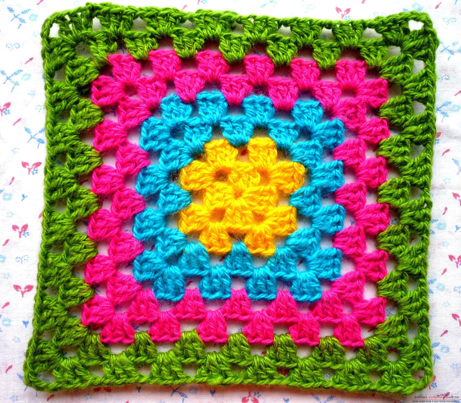 Чем ещё хорош “бабушкин квадрат” – можно использовать огромное разнообразие цветовых сочетаний и изменять размеры по своему желанию!
