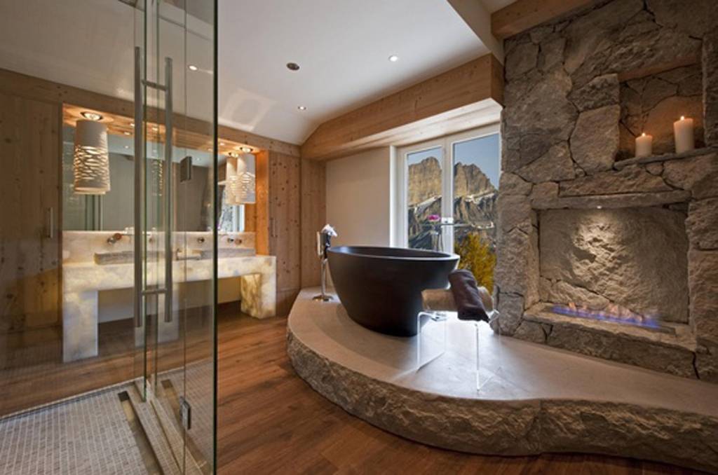 Экологичная, безопасная и очень прочная отделка, отлично отталкивающая влагу. Каменная кладка придает помещению роскошный, шикарный и статусный вид.