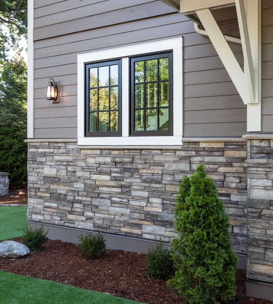 19. Проект предусматривает внешние оконные панели, копирующие плитку из природных пород