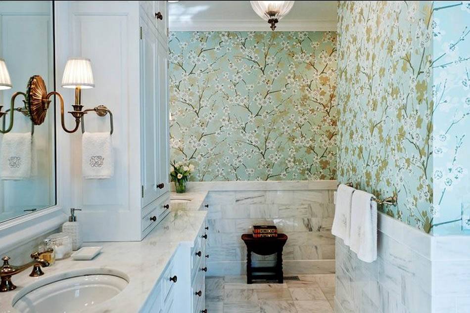 « Не рекомендуется выбирать для ванной комнаты бумажные, бамбуковые или пробковые обои, так как они обладают повышенными свойствами поглощения влаги»
