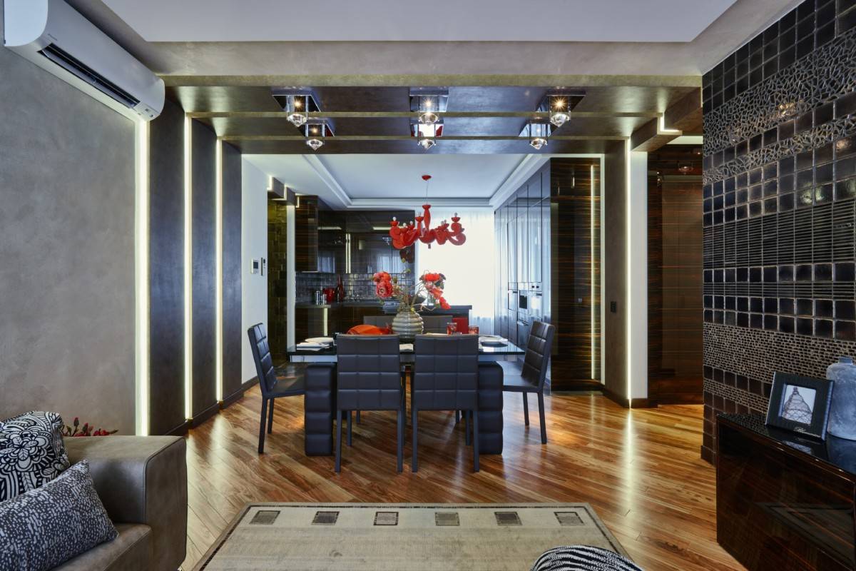 Их желательно комбинировать преимущественно со светлыми предметами мебели, аксессуарами и потолком. Пример таких интерьеров представлен ниже.