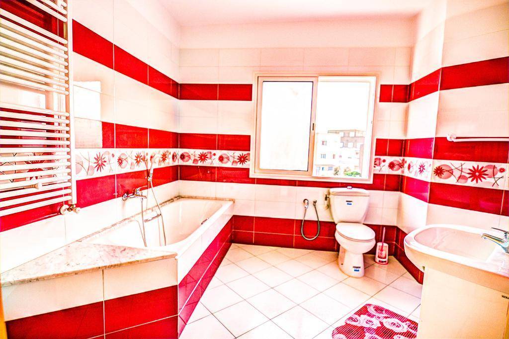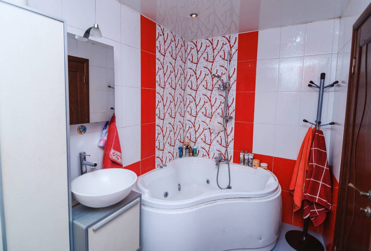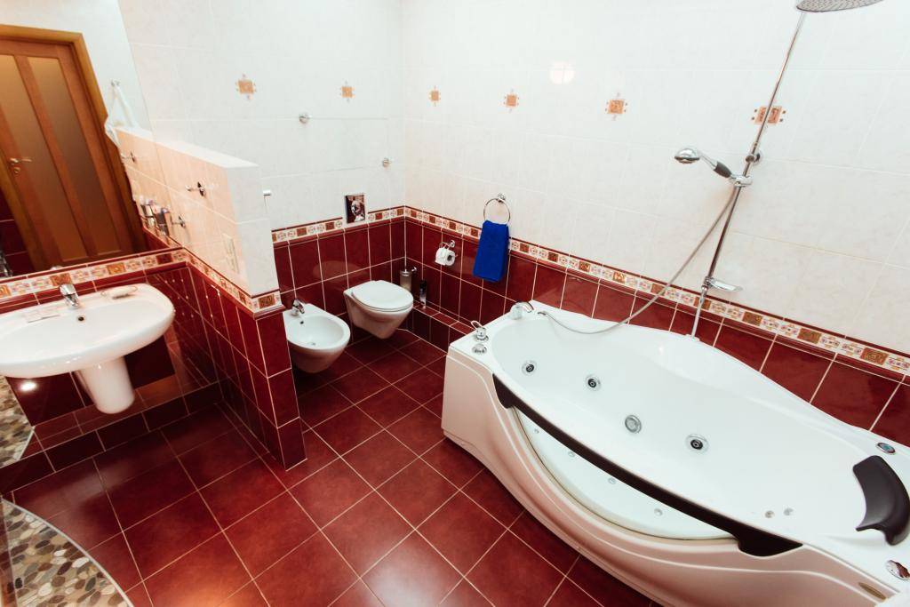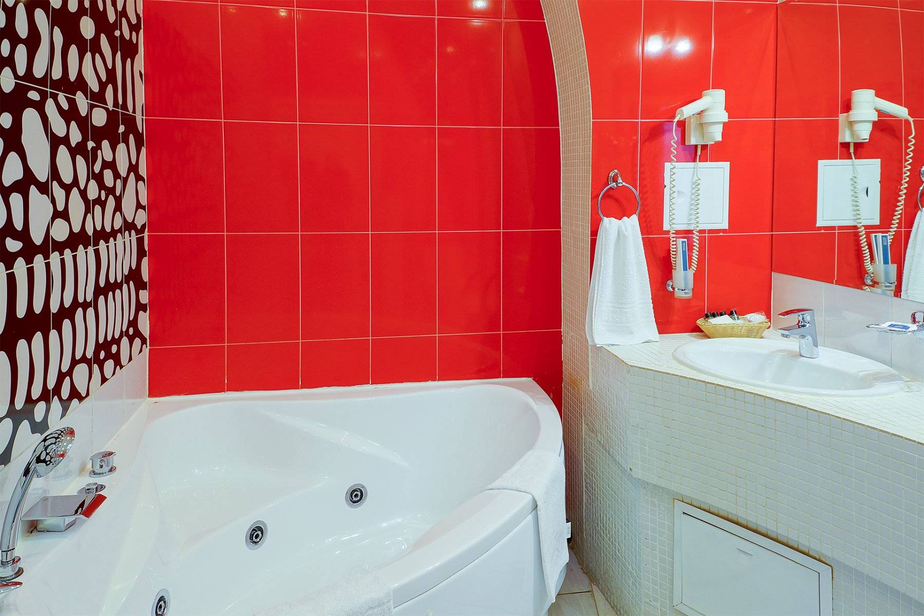 Красная ванна: яркий акцент для необычного интерьера санузла