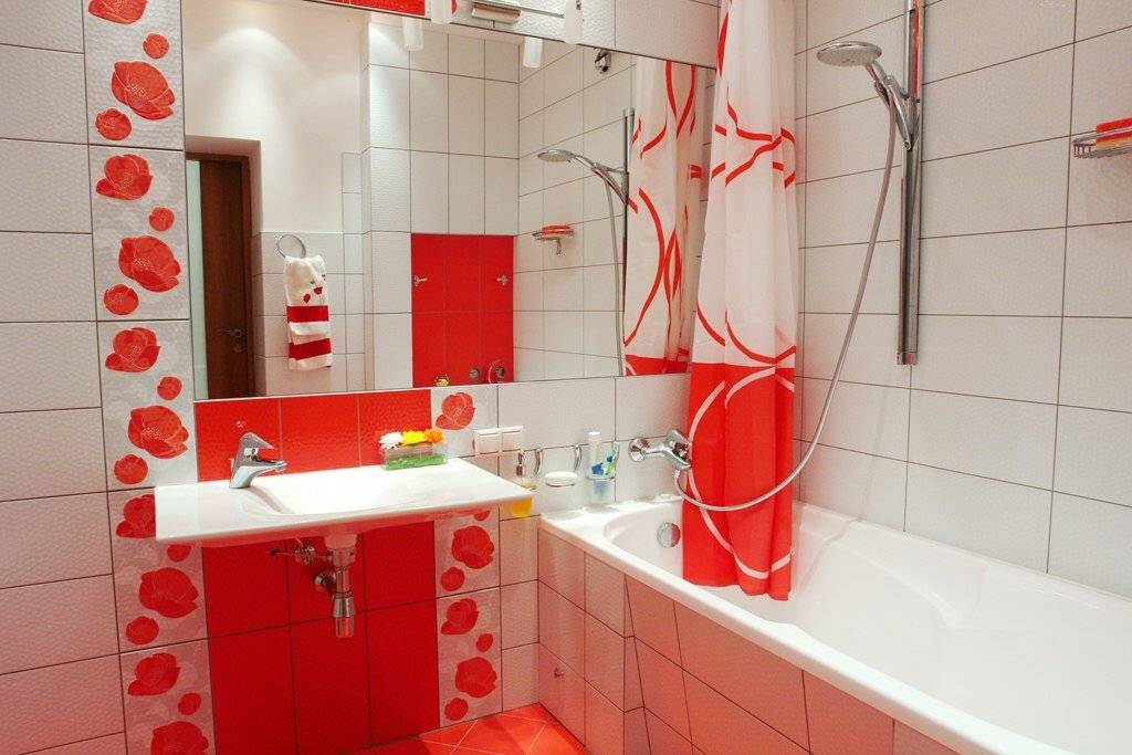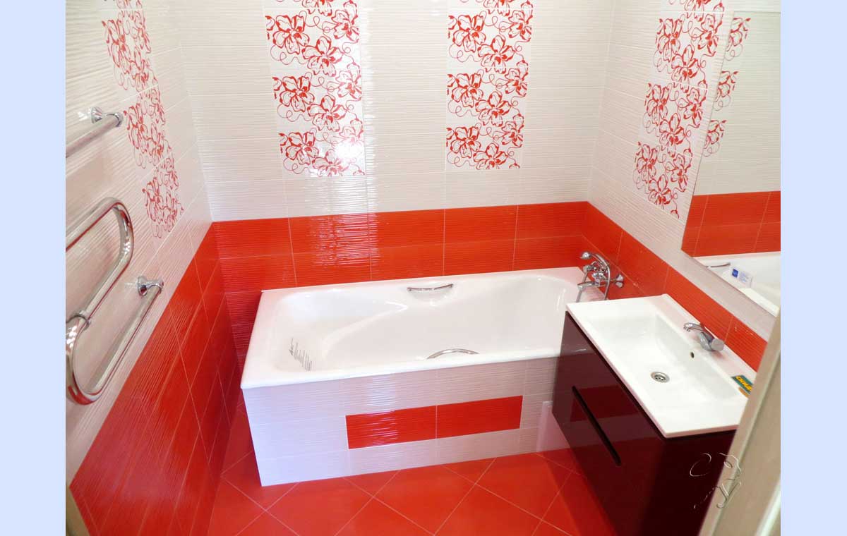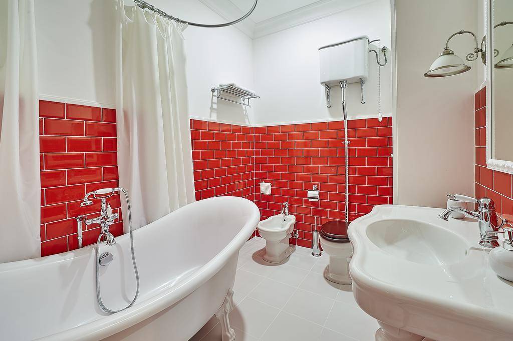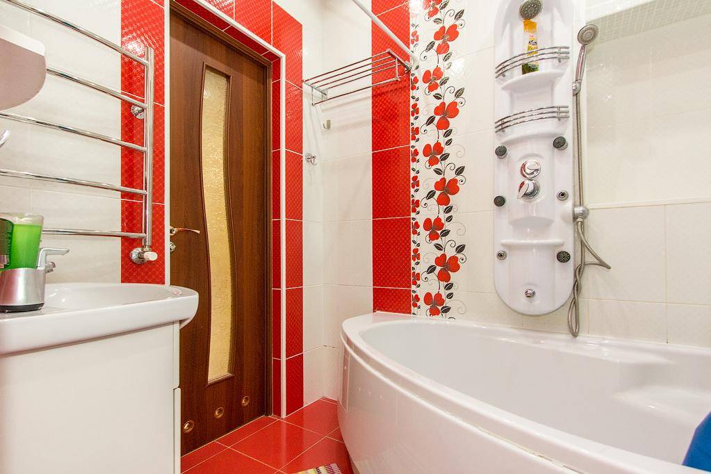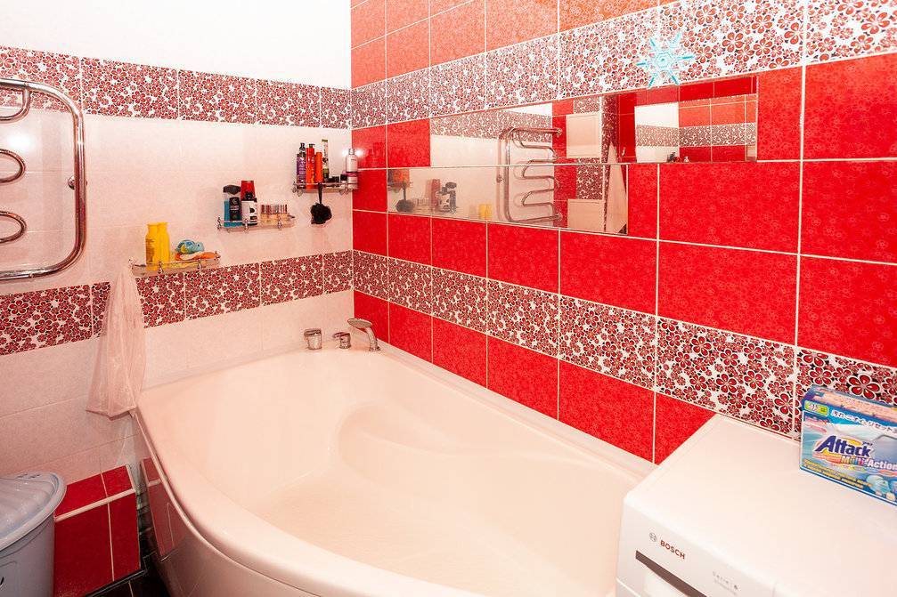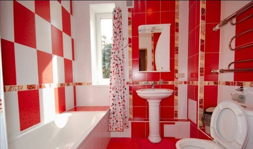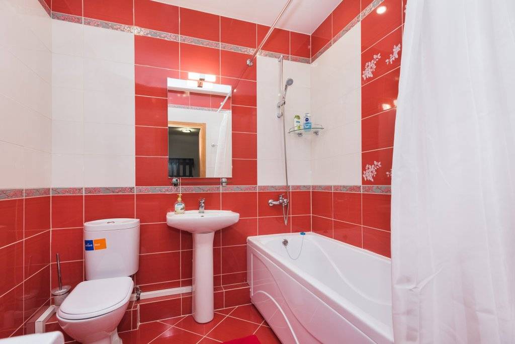 Как самому создать дизайн ванной, оформленной красной плиткой
