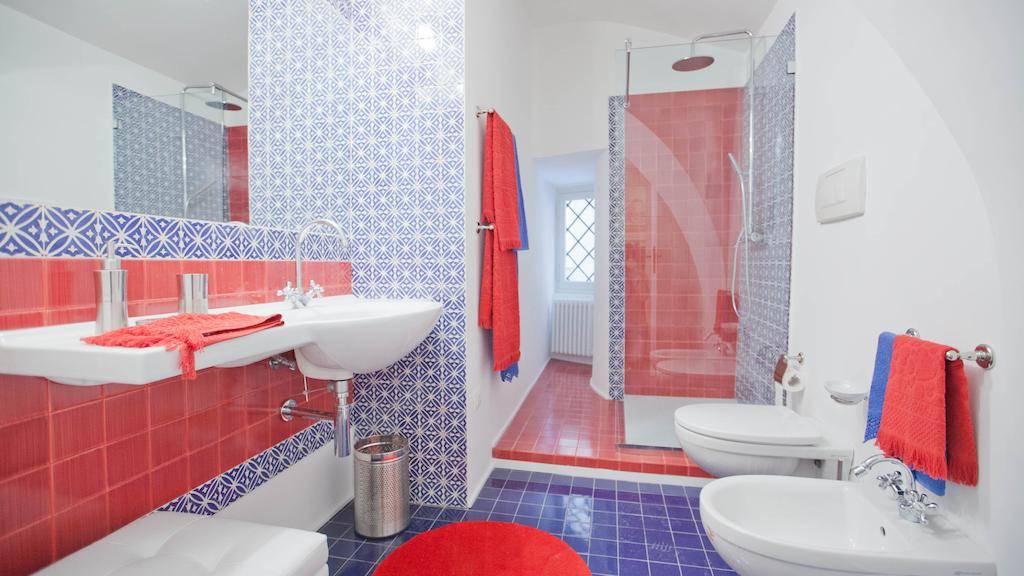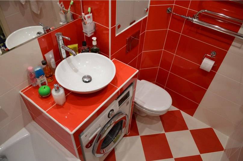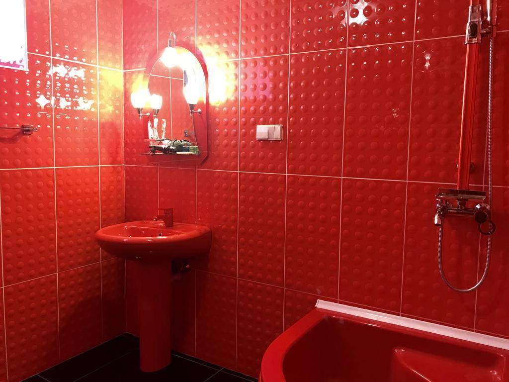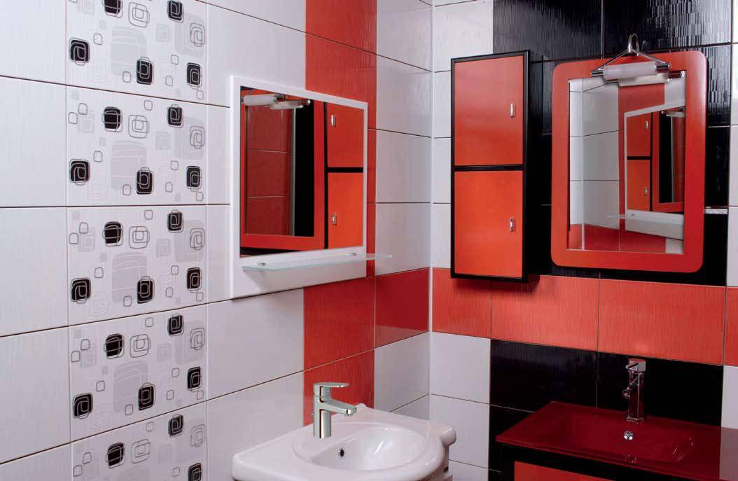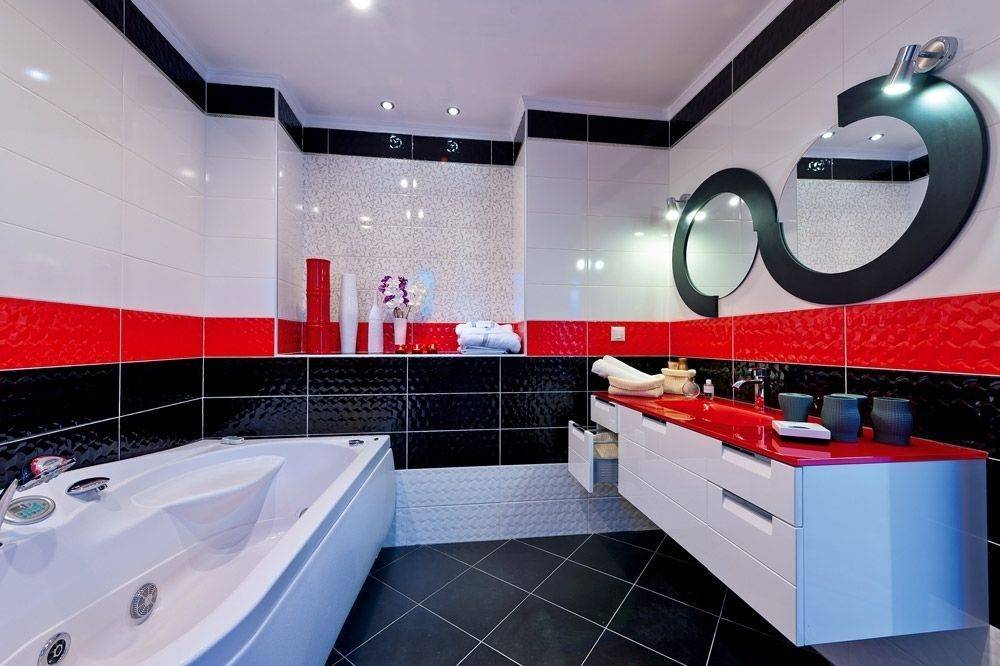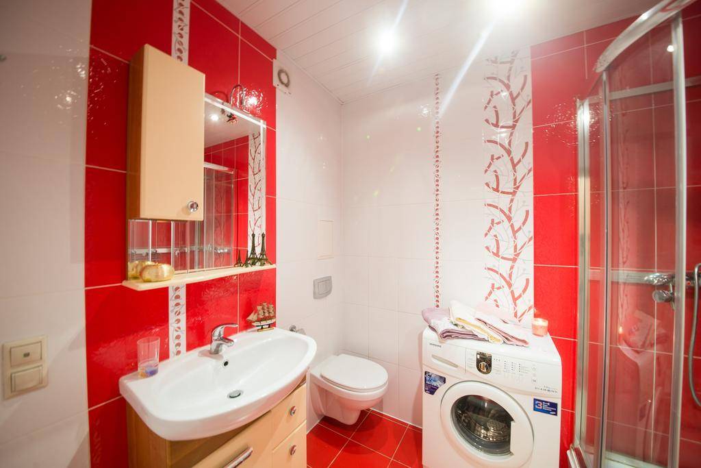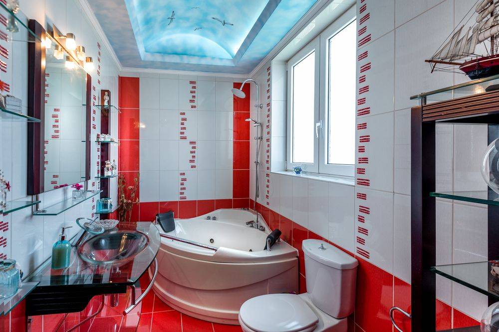 Как самому создать дизайн ванной, оформленной красной плиткой