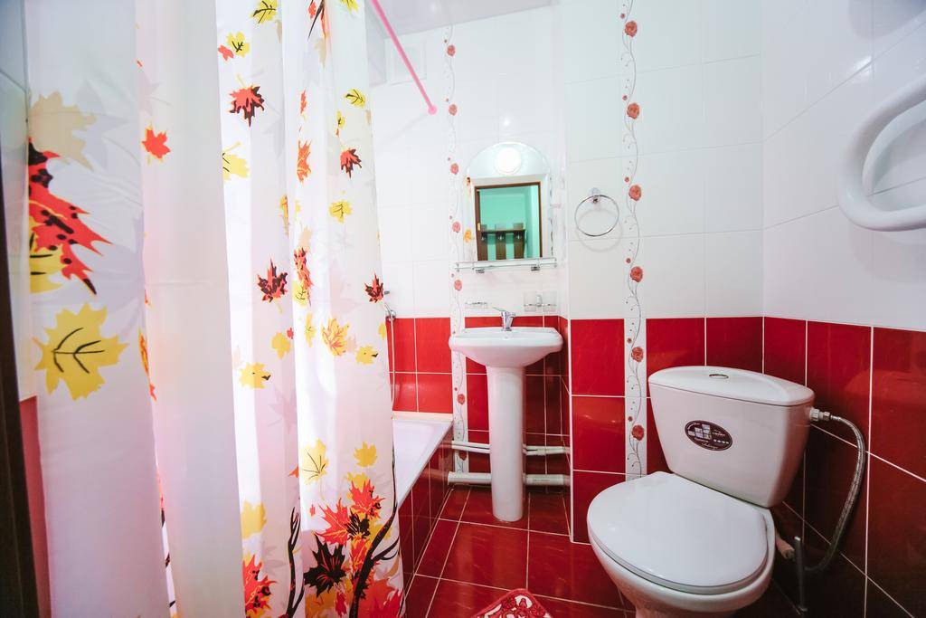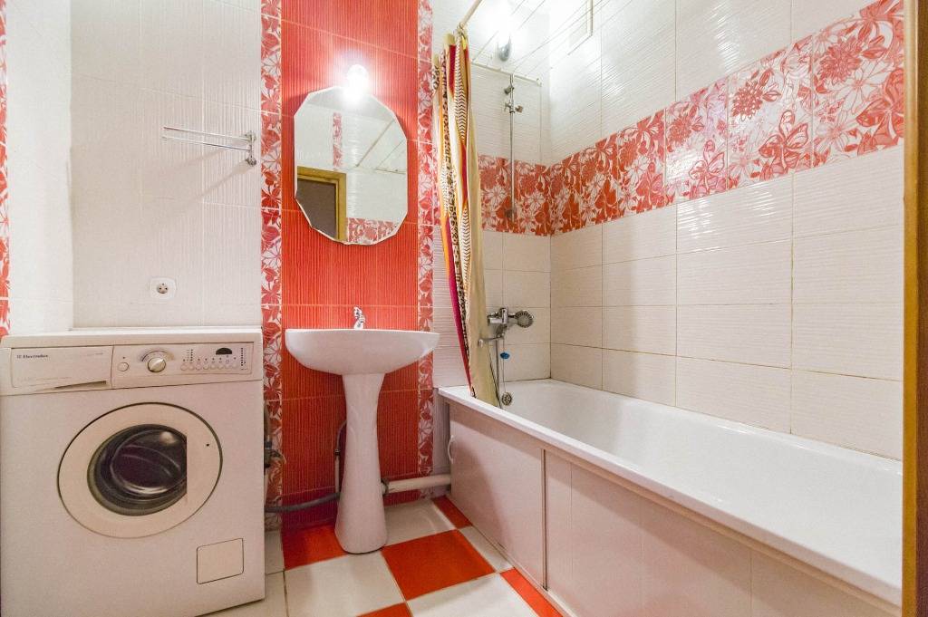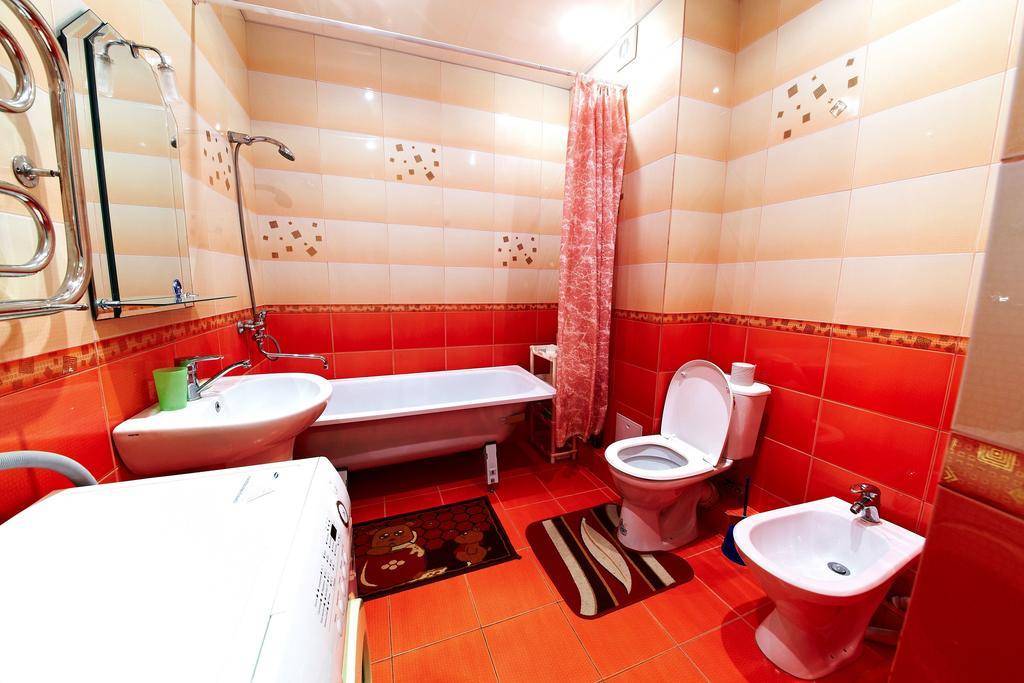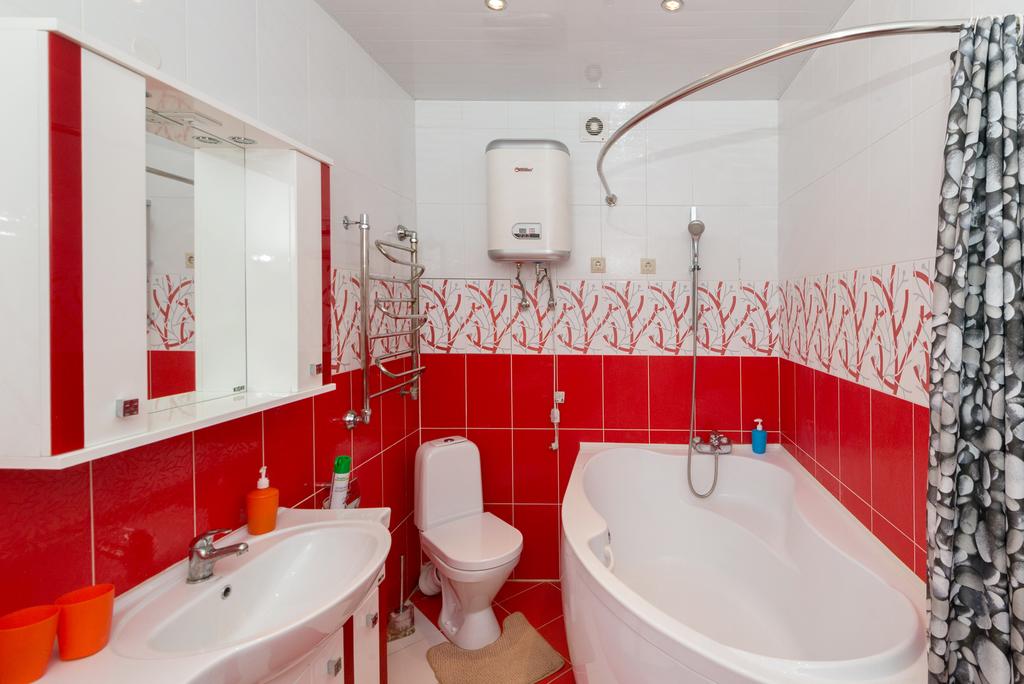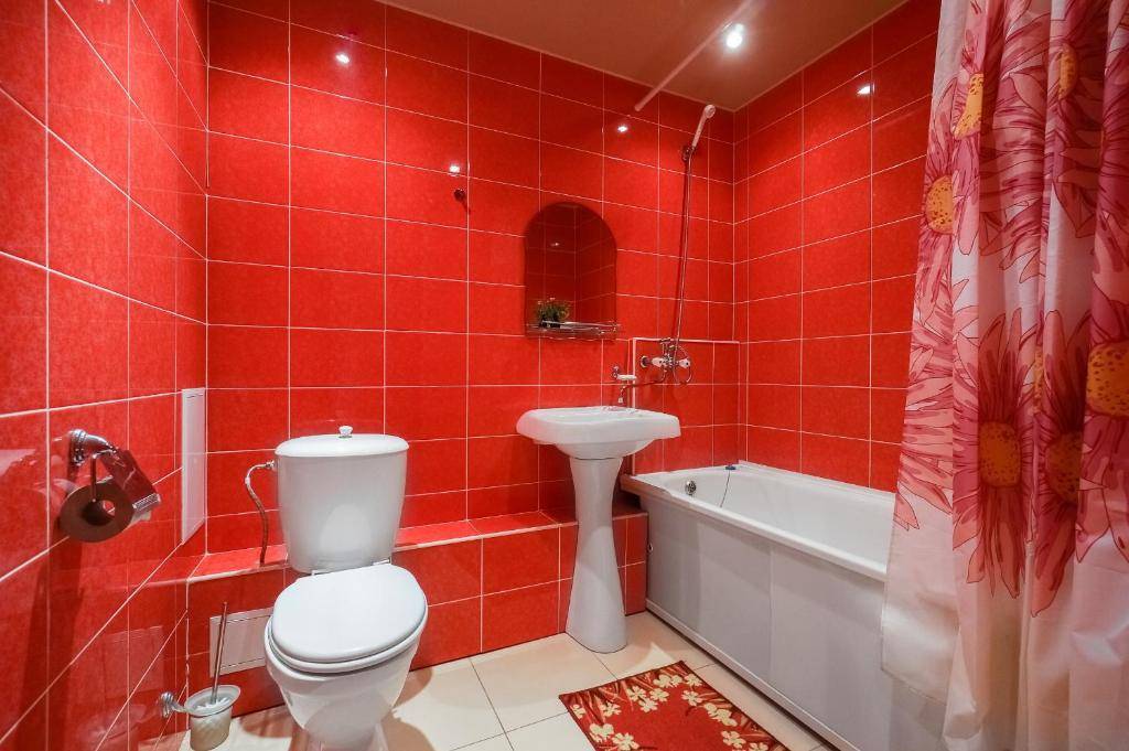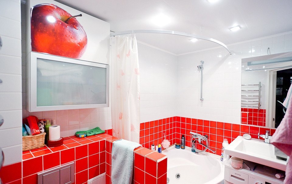 На мой взгляд, не очень удачное решение. Красная ванная слишком яркая, не хватает хотя бы одного цвета, чтобы достичь баланса и визуально увеличить пространство